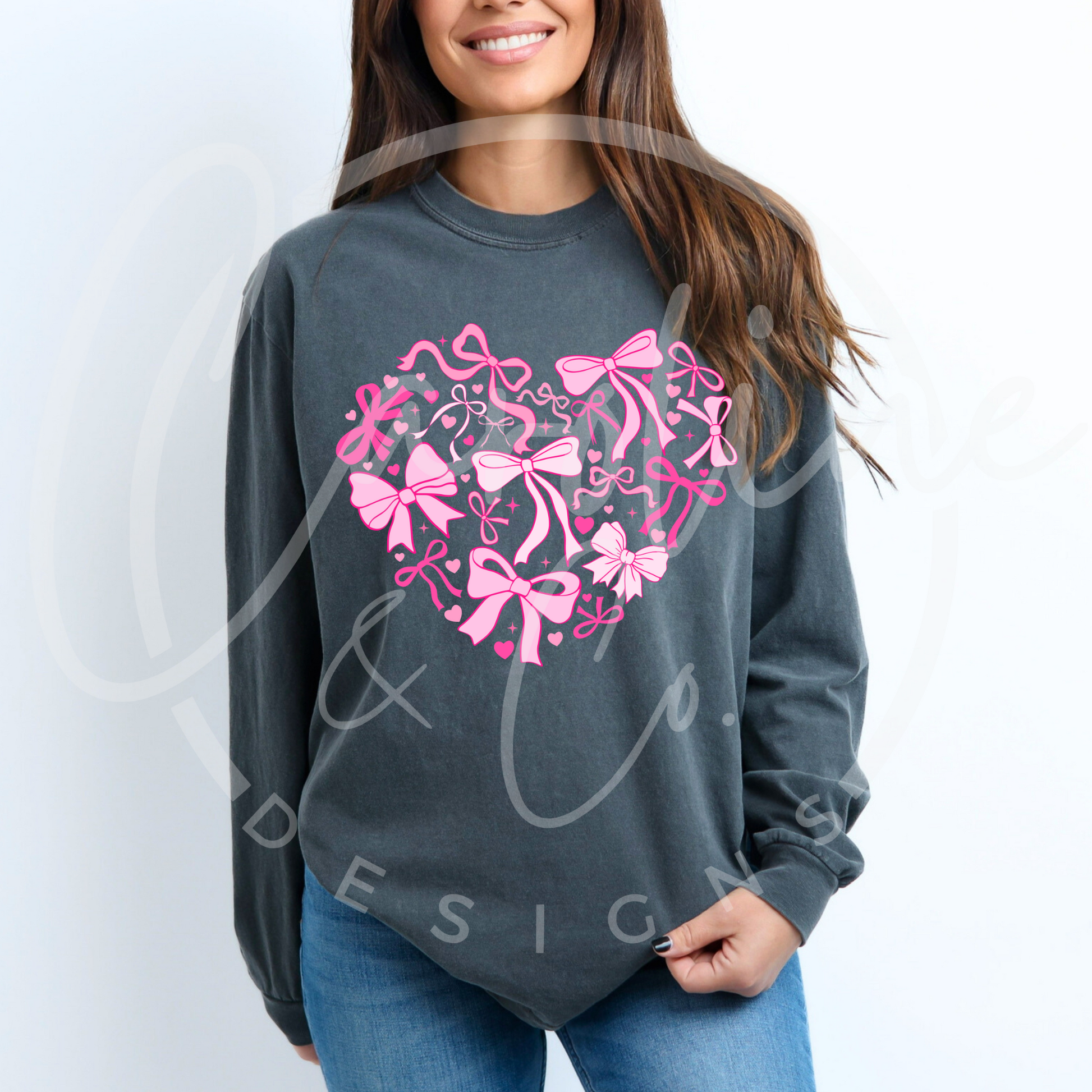 Valentine Coquette Bow Heart Comfort Colors Long Sleeve T-Shirt